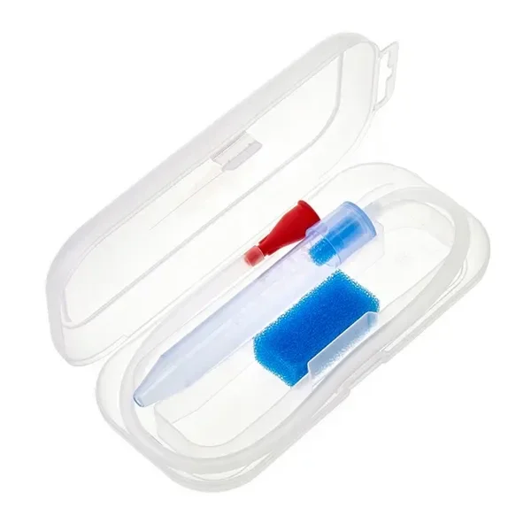Przezroczysty zbiornik pozwala kontrolować ilość, gęstość i kolor wydzieliny, a dołączone filtry klinicznie zabezpieczają przed jej przemieszczaniem i zarażeniem osoby obsługującej aspirator. Poręczny aspirator dostępny jest w wygodnym etui, co ułatwia przechowywanie i transport.