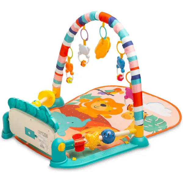 Edukacyjna Mata Zoo Toyz by Caretero to idealny produkt dla dzieci, które uwielbiają zabawę na leżąco. Mata jest wyposażona w pałąk z zawieszonymi na nim grzechotkami w kształcie przyjaznych zwierzątek oraz lusterkiem, które zachwyci maluszka. Multimedialny panel z dużymi przyciskami umili zabawę, a zabawki sensoryczne po bokach pomogą w rozwoju dziecka. Mata pomaga również w rozwoju koncentracji i uwagi dziecka. Jest odpowiednia dla dzieci już od pierwszych chwil życia. Dzięki przyjemnym melodiom i zestawowi grzechotek oraz lusterku, zabawa staje się jeszcze bardziej atrakcyjna.