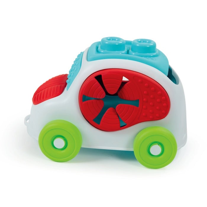 Innowacyjne autko z miękkimi elementami, takimi jak klocki Clemmy, łączy zabawę z odkrywaniem sensorycznym, rozwijając zmysł dotyku i zdolności manualne dziecka.