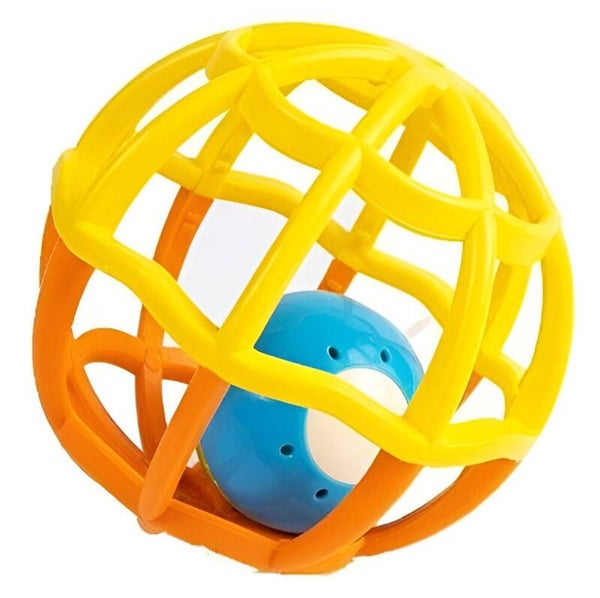 Wewnątrz piłki znajduje się grzechocząca kula, która zapewnia długą zabawę.