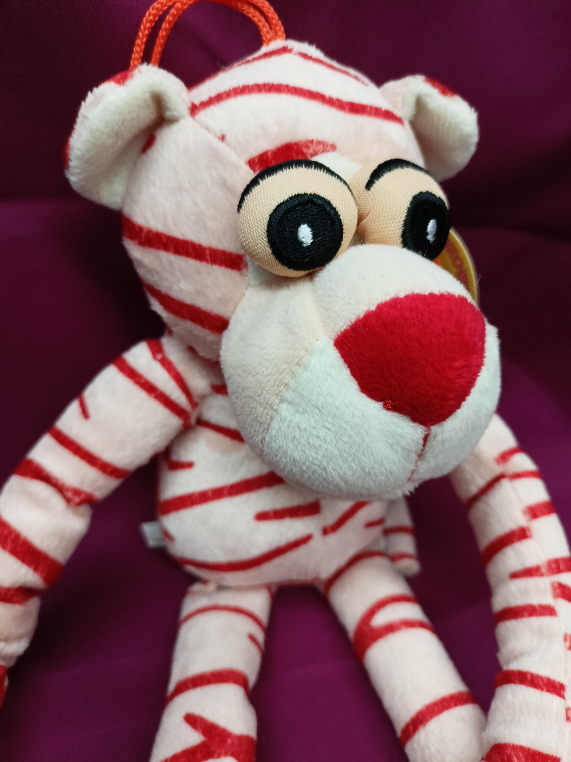 Przedstawiamy Tygrys Cukierek "Długie Łapy" – pluszaka, który jest po prostu niepowtarzalny! Ten wesoły tygrysek od razu przyciąga wzrok swoim czerwono-białym wzorem w paski, przypominającym świeży cukierek miętowy.