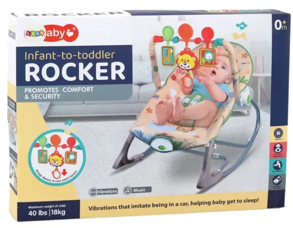 Bujaczek leżaczek z uroczym motywem lwa to komfortowe i bezpieczne miejsce do odpoczynku dla malucha, które jednocześnie pełni funkcję interaktywnej strefy zabawy. Kolorowe poszycie zdobione motywami lwa, owadów i roślin sprawia, że każda chwila spędzona w bujaczku jest pełna radości i przygody.
