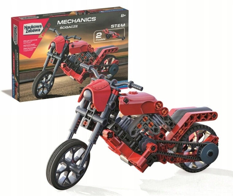Zestaw „Laboratorium Mechaniki – Ścigacze” to kompletny zestaw dla młodych pasjonatów pojazdów wyścigowych. Pozwala odkrywać mechanizmy pracy samochodów i rozwijać umiejętności techniczne poprzez zabawę.