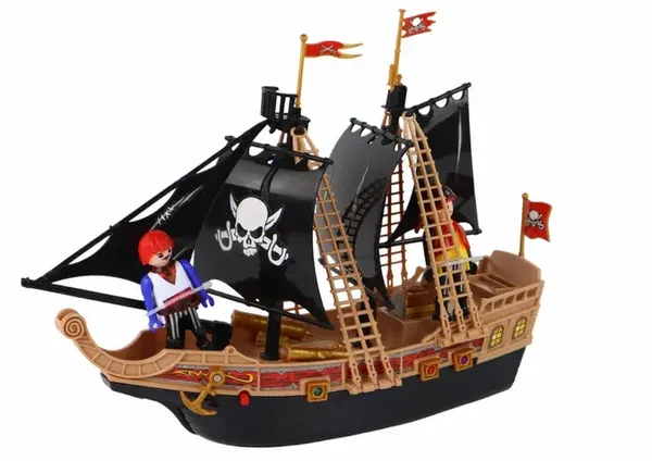 Statek posiada ruchome żagle i ster, które można ustawiać według własnego pomysłu. Na pokładzie czeka załoga złożona z 4 piratów, gotowych do pełnienia służby. W zestawie znajdują się także liczne akcesoria — od skarbów, przez łódkę i armatę, po konia oraz palmę — wszystko, czego potrzeba do tworzenia własnych morskich historii.