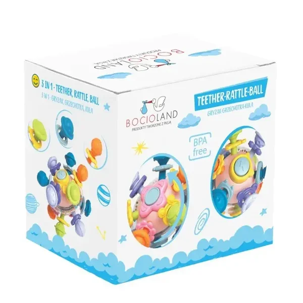 Pozwól maluszkowi odkrywać kosmos wszystkimi zmysłami. Zabawka sensoryczna „Kula” od Bocioland łączy gryzak, grzechotkę i elementy Montessori, przynosząc ulgę w ząbkowaniu oraz wspierając rozwój sensoryczny niemowląt.