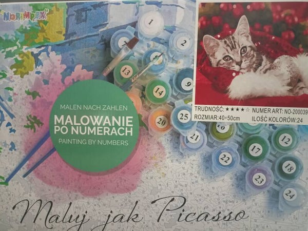 Poczuj się jak prawdziwy artysta i stwórz wyjątkowe dzieło, nawet jeśli nigdy wcześniej nie malowałeś. Zestaw „Malowanie po Numerach” od Norimpex pozwala w prosty sposób stworzyć obraz przedstawiający uroczego, pręgowanego kotka w świątecznej scenerii. To doskonała forma relaksu, rozwijania precyzji i kreatywności, a także świetny pomysł na prezent.