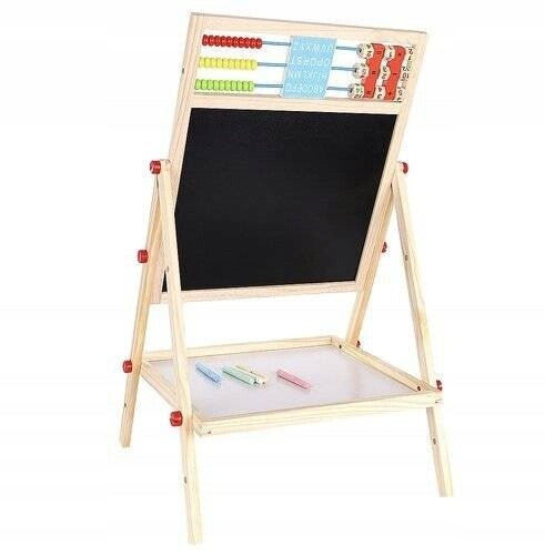 Tablica edukacyjna pobudza wyobraźnię i kreatywność, ćwiczy zdolności manualne, koncentrację i pamięć. Dziecko uczy się cierpliwości, pierwszych liter i cyferek. Doskonały pomysł na prezent dla malucha.