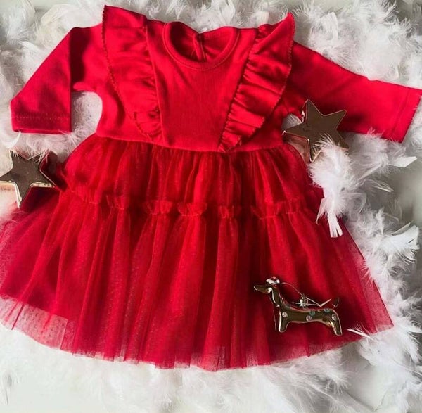 SF01 Merry Christmas Sukienka z długim rękawem Mamatti - czerwony rozm. 74-116