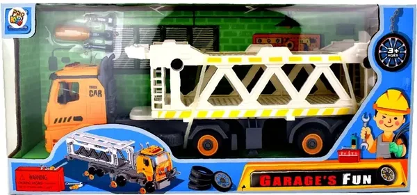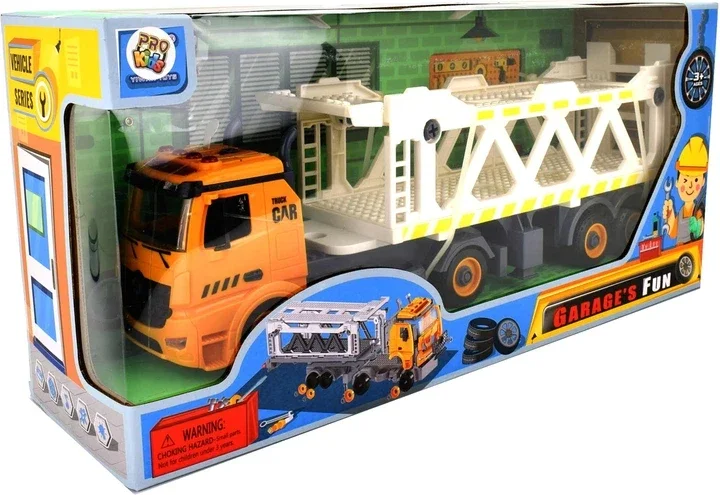 Dziecko może bawić się także w konstruktora dzięki specjalnym śrubom, które z łatwością przykręci i odkręci. Plastikowy śrubokręt z 3 końcówkami pozwala bezpiecznie rozkręcać pojazd. Laweta posiada podpórkę, dzięki czemu może stać samodzielnie po odłączeniu od ciężarówki.