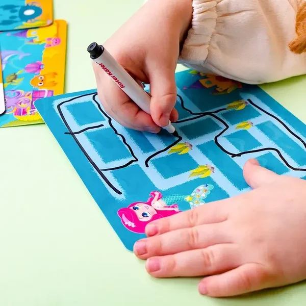 Wykonuj zadania na kartach specjalnym pisakiem ścieralnym.