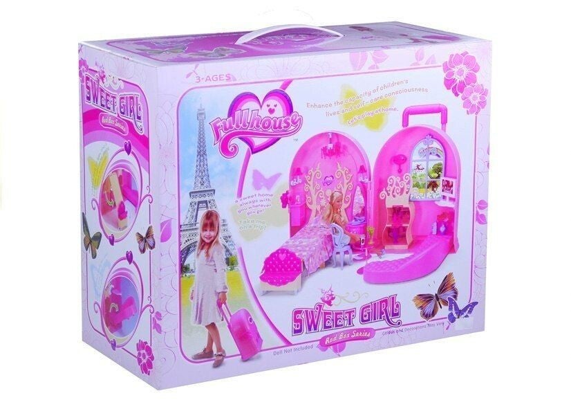Domek dla Lalki z Wyposażeniem – Składany w Walizkę