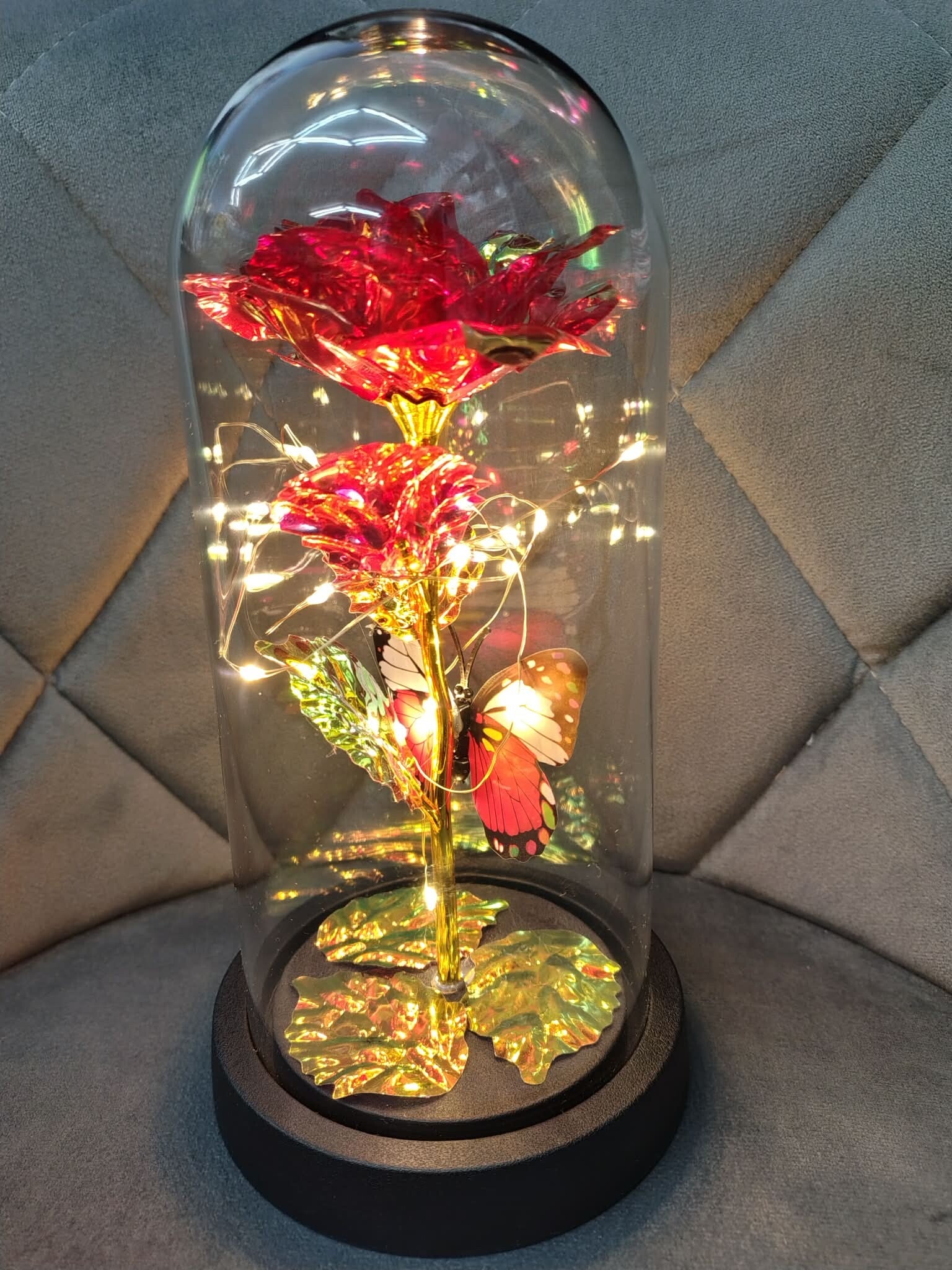 Subtelne, ciepłe światło LED delikatnie podkreśla blask róży, tworząc romantyczną i przytulną atmosferę w każdym wnętrzu – idealną do sypialni, salonu czy jako nastrojowa lampka nocna.
