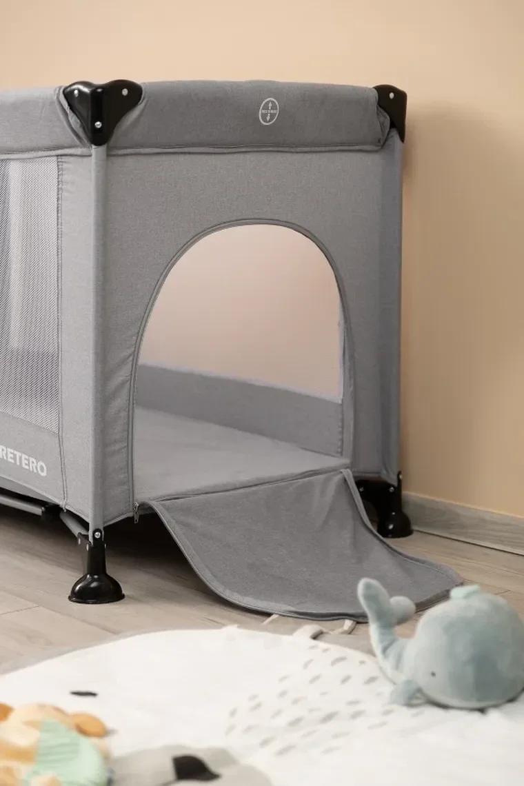Do zestawu dołączony jest materacyk turystyczny o wymiarach 120 × 60 cm, który zapewnia dziecku wygodne miejsce do snu. Stabilna konstrukcja oraz zgodność z europejską normą EN 716 gwarantują bezpieczeństwo użytkowania.