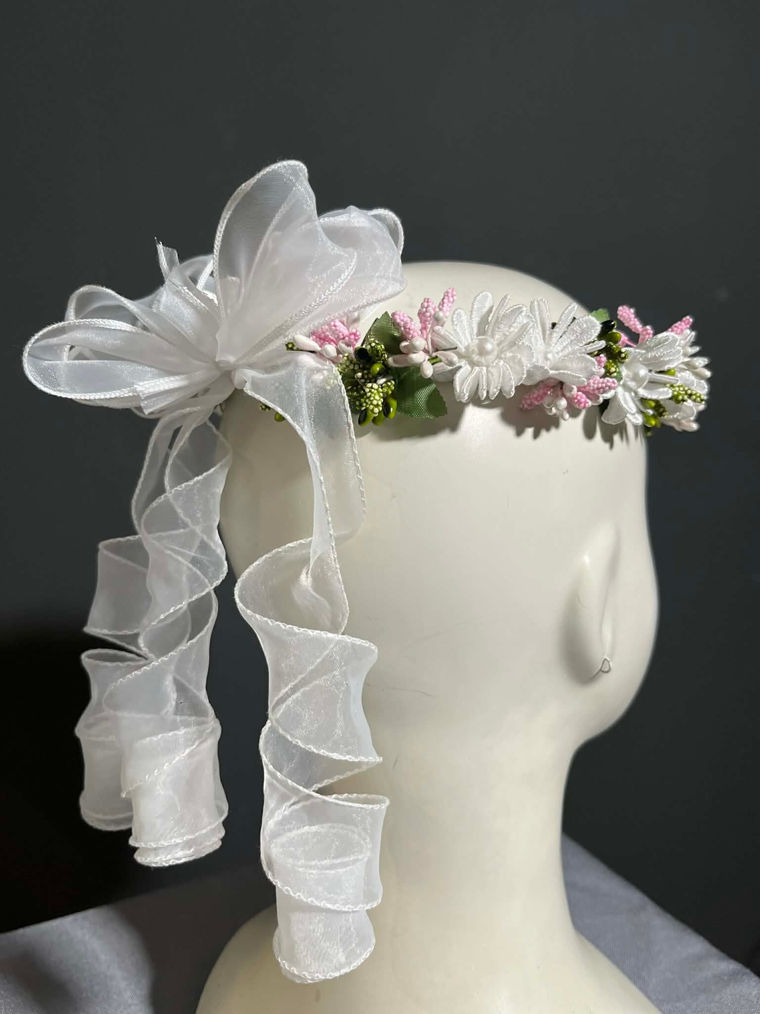 Luksusowy Wianek Komunijny z Kryształkami i Kaskadą Wstążek