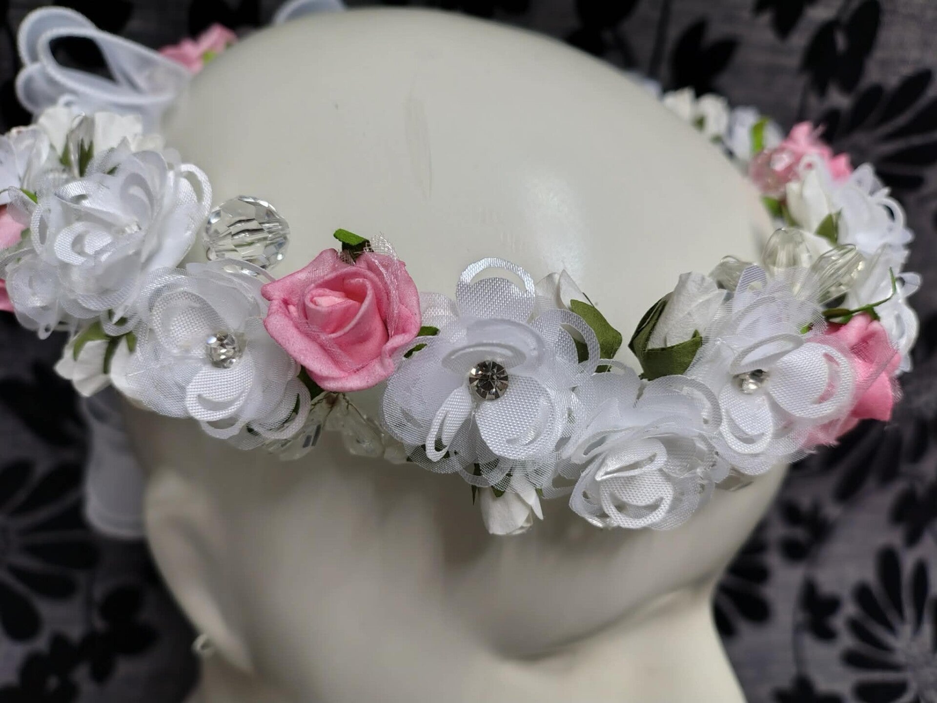 Ekskluzywny Wianek Komunijny Crystal – Biżuteryjny Blask i Kaskada Wstążek