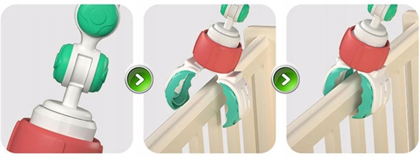 Dzięki uniwersalnemu mocowaniu możesz go łatwo zamontować na łóżeczku, wózku, foteliku, krzesełku czy kołysce – gdziekolwiek Twoje dziecko się znajduje, ulubione zabawki będą zawsze w zasięgu ręki.