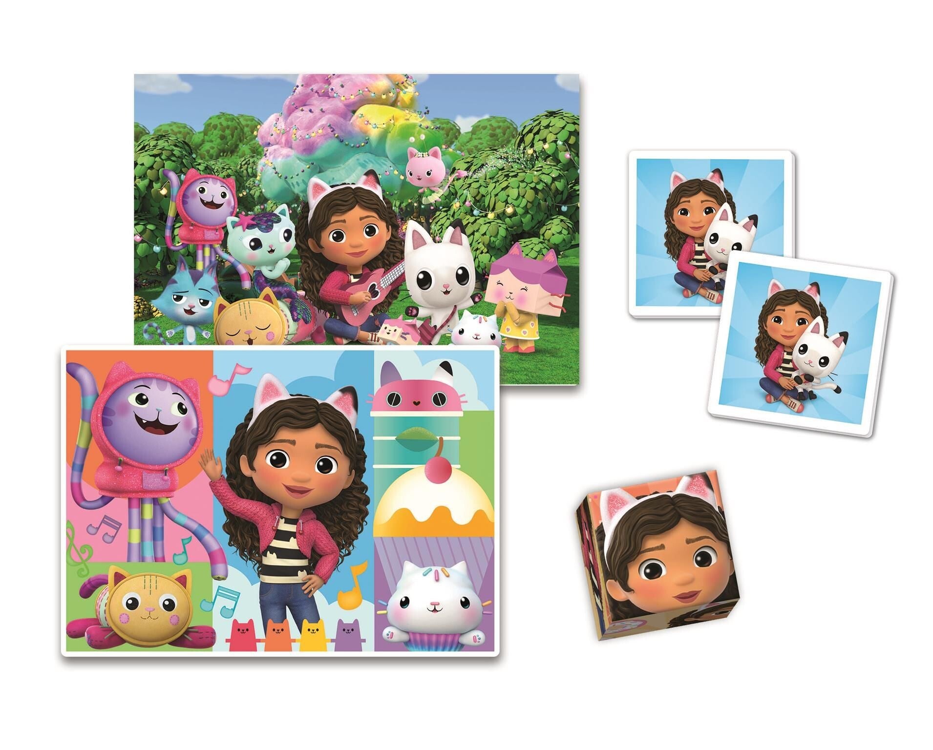 Zestaw pomaga rozwijać pamięć, zmysł obserwacji i kojarzenia. Bogaty zestaw do zabawy i nauki w towarzystwie bohaterów serialu Koci Domek Gabi! Zawiera puzzle 30 elementów i 48 elementów, grę memo i sześć kostek. Zabawka, w której jest wszystko, aby rozwijać pamięć, logiczne myślenie, sprawność manualną i zagadnienia typowe dla wieku przedszkolnego.