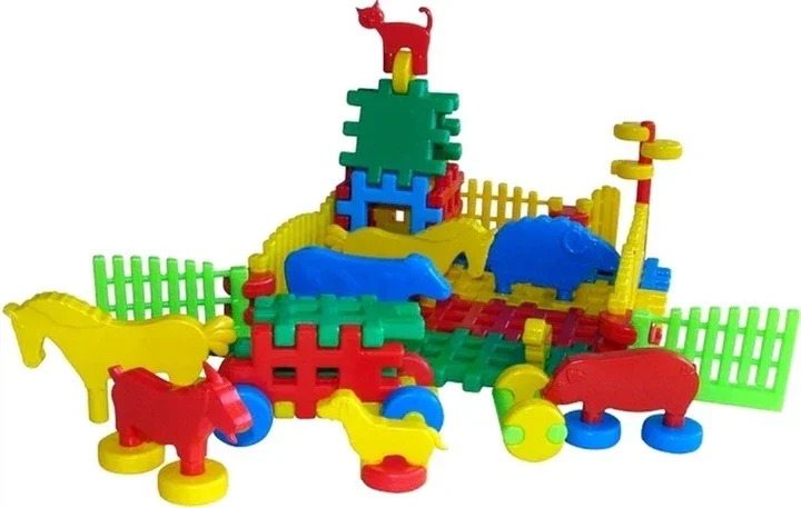 Zestaw Mali farmerzy zawiera klocki, które pozwalają budować różne elementy farmy, takie jak budynki, zwierzęta, pojazdy rolnicze i postacie z farmy. Dzieci mogą tworzyć własne sceny z życia na wsi, jednocześnie rozwijając wyobraźnię i umiejętności budowania.