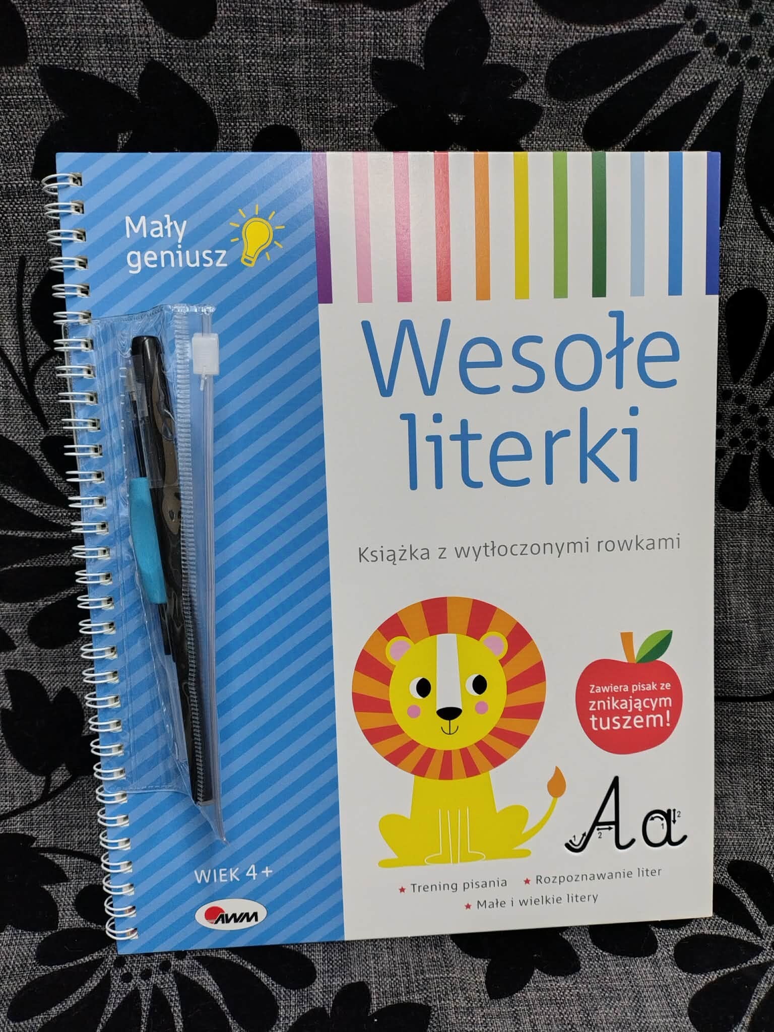Do zestawu dołączono magiczny pisak ze znikającym tuszem, który pozwala wielokrotnie powtarzać ćwiczenia. W książce znajdują się także specjalne rowki do odwzorowania, ułatwiające poprawne kreślenie kształtów liter i wspierające prawidłowy rozwój psychoruchowy dziecka.