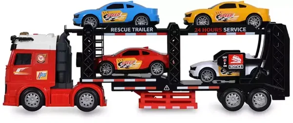 - Kompletny Zestaw: Wraz z dużą ciężarówką otrzymujesz mniejsze autka, które można załadować na dwupoziomową naczepę. To gotowy scenariusz do zabawy w logistykę i transport.