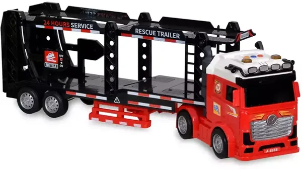Przygotuj się na wielki transport! Ten potężny zestaw z ciężarówką typu laweta (tral) to marzenie każdego małego fana motoryzacji. Solidny pojazd transportowy wyposażony w efekty świetlne i dźwiękowe nie tylko wygląda realistycznie, ale zapewnia interaktywną zabawę na wiele godzin.