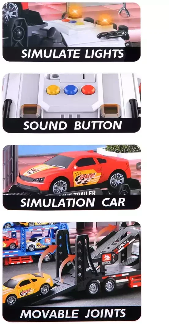 Zestaw Ciężarówka Laweta z Autkami – Światło i Dźwięk (JP588-81A)