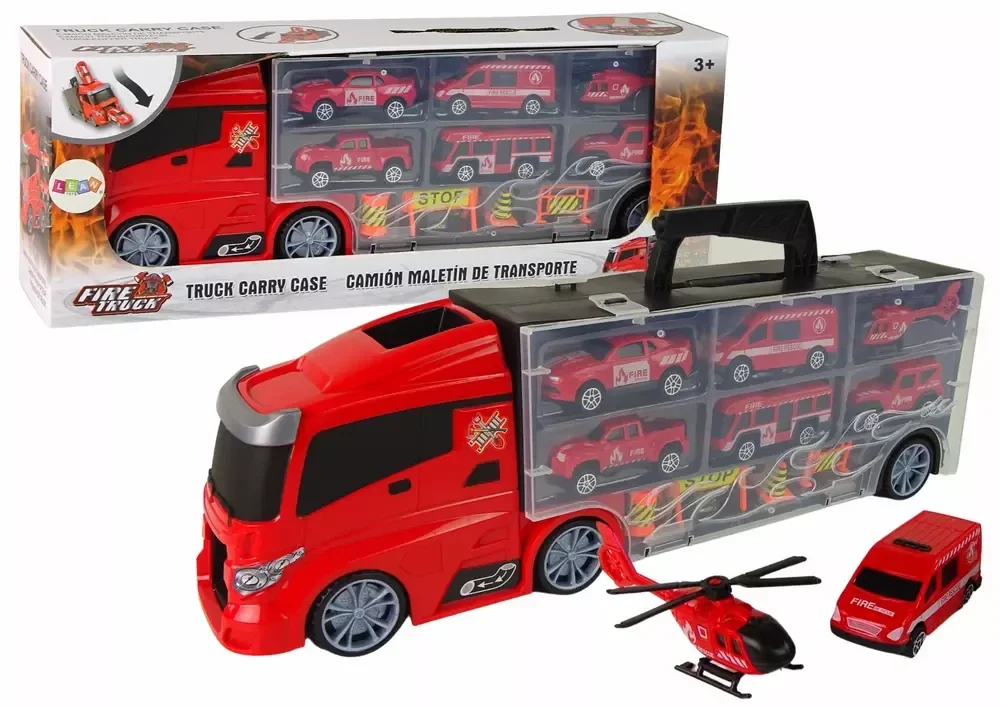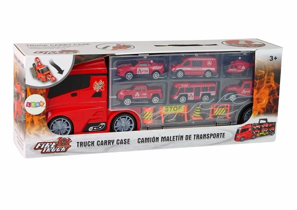 Transporter ciężarówka strażacka to inspirowana pracą strażaków ciężarówka z miejscem do przechowywania pojazdów, zachęcająca do wymyślania własnych przygód. W naczepie po przeciwnej stornie jest specjalny schowek, w którym można przechowywać dodatkowe pojazd oraz akcesoria, co pozwala na trzymanie wszystkich elementów w jednym miejscu, a to nie musisz się martwić, że coś zgubisz, 6 pojazdów związanych z gaszeniem „pożarów” inspiruje do kreatywnej zabawy w realistycznym otoczeniu.
