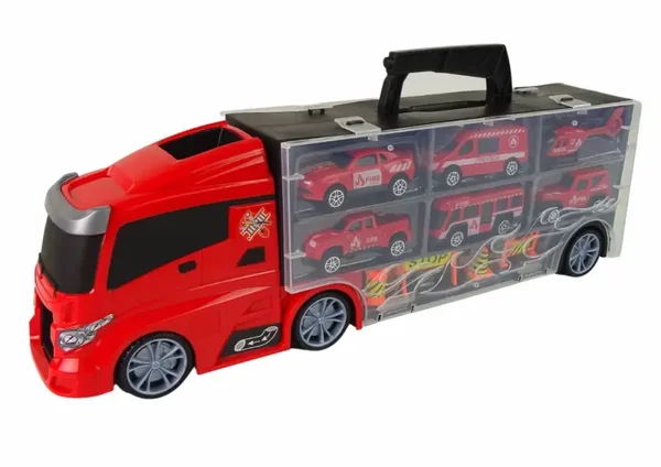 Transporter ciężarówka strażacka to wielofunkcyjny pojazd, który inspiruje dzieci do zabawy w akcje ratunkowe w ramach własnych, bohaterskich przygód. Transporter ma w przyczepie 6 pojazdów oraz po drugiej stornie może pomieścić kolejne 6 samochodzików (sprzedawanych oddzielnie).